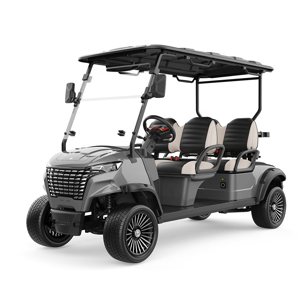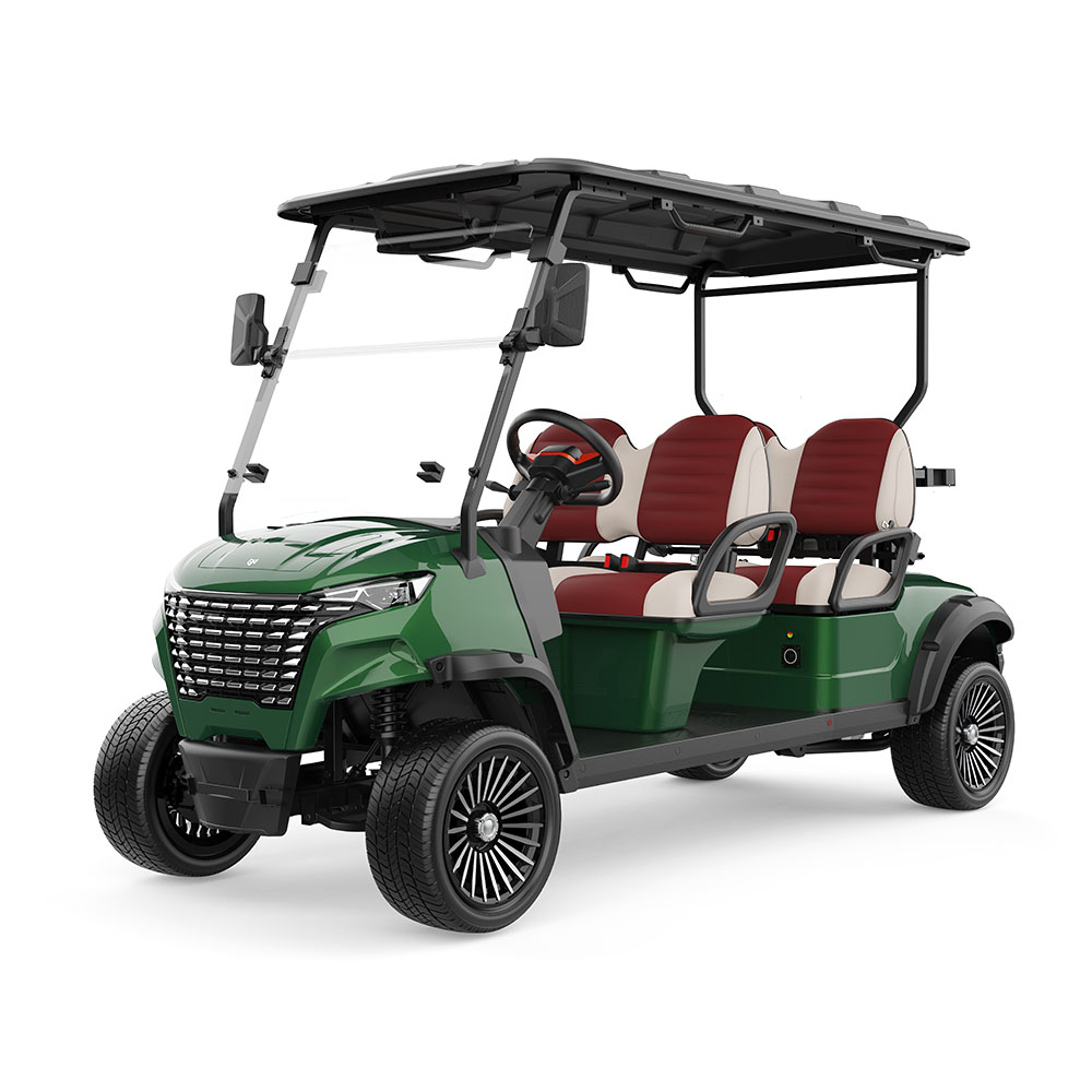 This 48V electric golf cart is designed for outdoor and resort use, featuring a powerful 48V5KW IP67 AC motor, a 51.2V105AH LiFePO4 battery with certifications, and a high-strength chassis. It offers a max speed of ≤25MPH, a range of 60-80 miles on flat roads, and a minimum ground clearance of 140mm for off-road performance. Equipped with LED lights, an intelligent onboard charger, and luxury features like premium microfiber leather seats, it ensures both functionality and comfort.