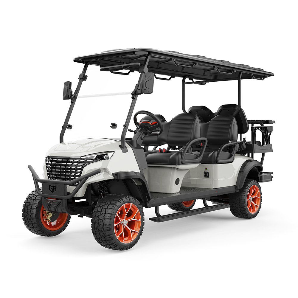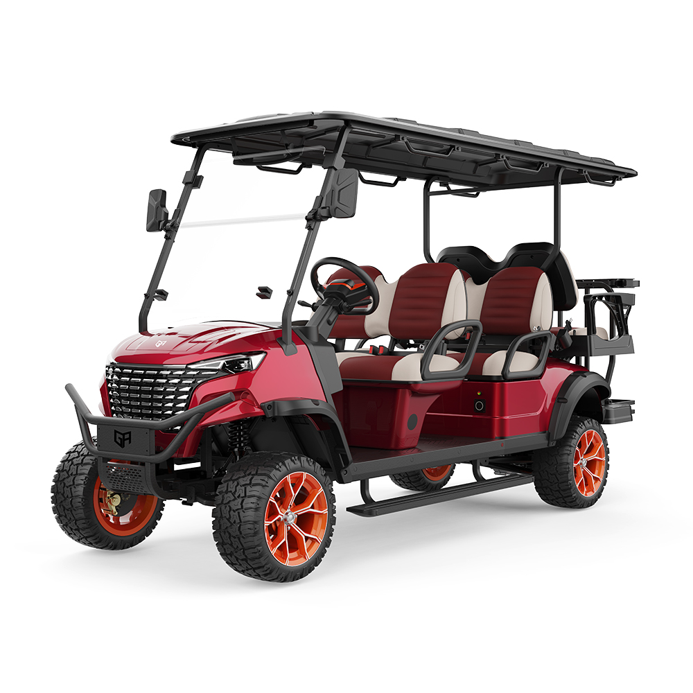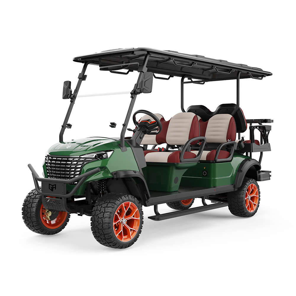 The GreenRider Golf Carts Electric 6 Seater is designed for versatility, supporting off-road adventures with a powerful 48V5KW IP67 AC motor and a robust high-strength chassis. It features an advanced LiFePO4 battery with certifications for safety and reliability, ensuring a range of 60-80 miles on flat roads. Equipped with intelligent systems like EPS steering, LED lights, and an electromagnetic braking system, it delivers both performance and comfort. The sleek metallic paint finish and premium microfiber leather seats add luxury, while the vehicle’s adaptable design suits golfing, hunting, and sightseeing.