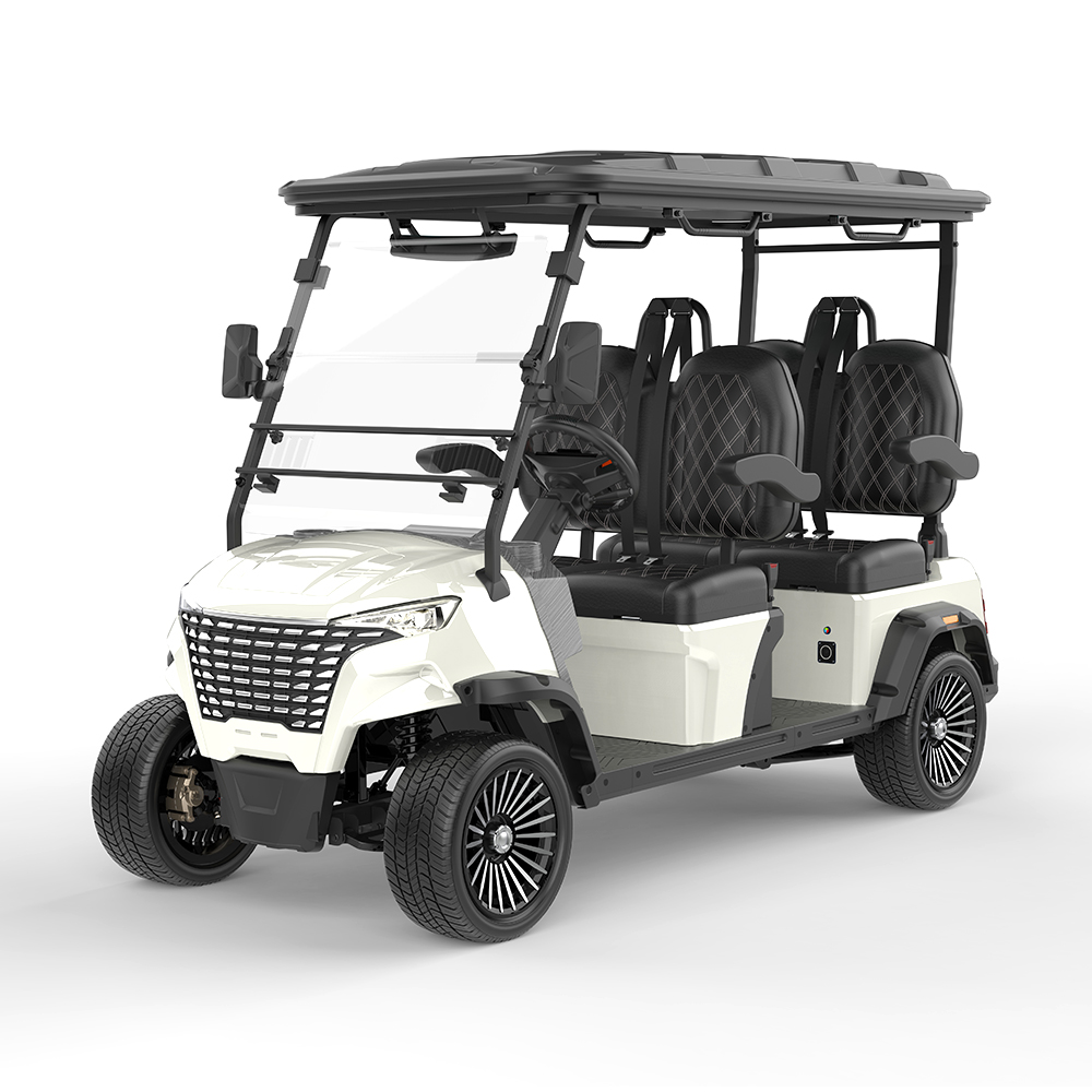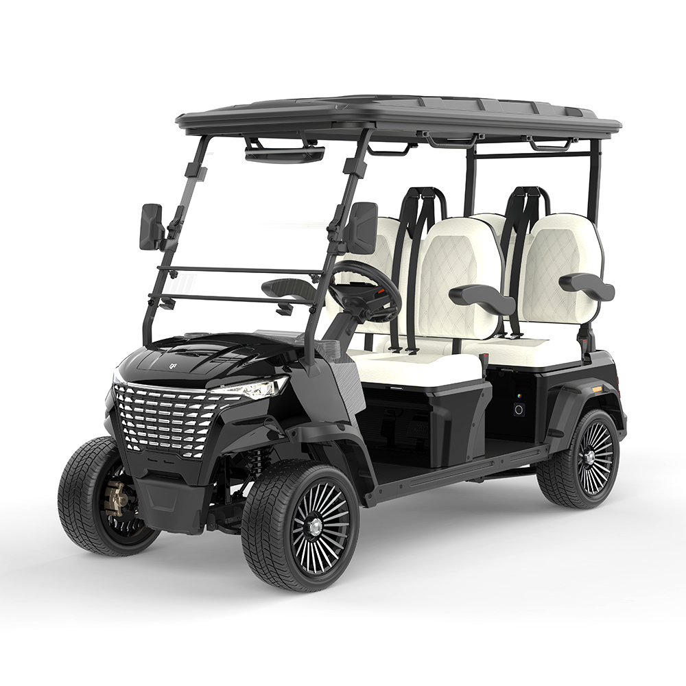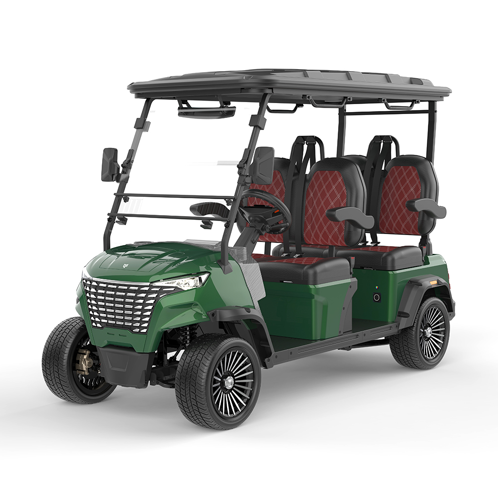 Experience luxury and performance with the GreenRider 4-seater golf cart, designed for off-road adventures on beaches and outdoors. Powered by a 48V5KW IP67 AC motor and LiFePO4 battery, it offers a range of 60-80 miles, LED lights, EPS steering, and a high-strength chassis with a sleek metallic finish. Enjoy advanced safety features like four-wheel hydraulic disc brakes and electromagnetic parking brake.